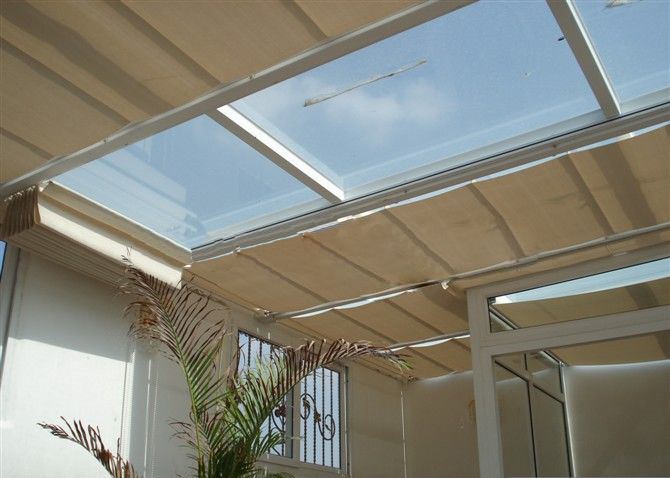 是固定在室內采光頂的頂部或側面形影玻璃采光頂的遮陽系統