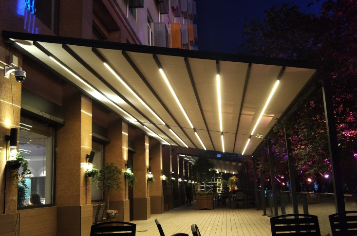 近乎完美的中級戶外遮陽系統(tǒng) 擁有篷房一般牢固的結(jié)構(gòu) 可按需求擴展空間